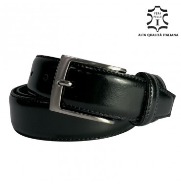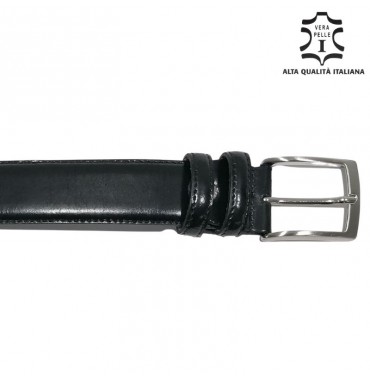 Cintura in vera pelle di vitello Blu e fibbia satinata, prodotta interamente in Italia.