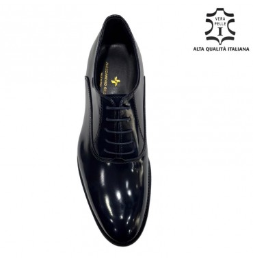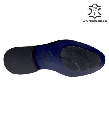 Scarpa stringata elegante in vera pelle spazzolata di colore Blu con suola in cuoio antiscivolo prodotta interamente in Italia