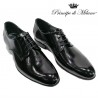 Scarpa stringata in pelle di alta qualità, modello Derby di colore nero in vernice lavorata e pelle spazzolata nella parte posteriore, una scarpa che unisce Comfort e stile.