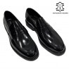 Mocassino nero in pelle spazzolata che unisce stile raffinato e praticità.